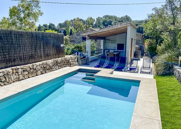 Villa Guineu med 2 sovrum, som ligger ungefär 5 minuters promenad från Golf Pollensa, erbjuder bekvämligheter som WiFi och en privat parkering.